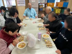 こちらの行事はコロナ禍より約5年ぶりに開催された行事で、職員が作ったお料理に、法人を利用されている施設の利用者さん達が各々テーブルゲームを楽しみながら交流をはかっていただける内容となっております。